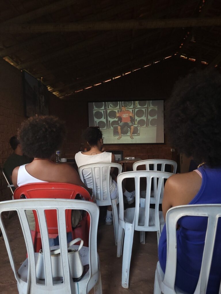 Venho novamente a essa coluna para falar sobre o ato de exibir filmes, projetá-los para um público, propor discussões e reflexões em torno de imagens e sons. Desta vez, não mais em um cineclube, mas numa mostra de cinema na minha cidade, Poá. A mostra O Funk no Cinema surgiu do desejo em exibir filmes que tratam do funk, cientes que esse recorte é efêmero. Entre documentários, ficções e “clássicos” registros das redes, a programação passou uma visão de como o audiovisual tem se aproximado do funk ao buscar retratá-lo, seja pela mescla entre filmagens atentas dentro do baile e entrevistas com MCs, DJs e dançarinos; seja por um modo de fazer cinema sobre funk que se assemelha à percepção da própria escuta. Tal percurso esteve presente ao longo de dois fins de semana em dois espaços culturais de Poá, um mais periférico e outro próximo do centro: uma casa de barro e um teatro. Eu, que sempre fui muito interessado em estar próximo da tela para uma completa imersão do filme, me vi mais fascinado pelo olhar dos outros para a tela. Estar atrás das cadeiras e poder ver todos concentrados em cada sessão me trouxe uma série de importâncias que, se não fosse pelo trabalho anterior de organizar o evento, eu não enxergaria como uma demanda. Me atentava para a cortina do camarim e o vento da tarde ensolarada atravessando o olhar da platéia na projeção, interrompendo a escuridão que caracteriza estar dentro do cinema. Em outros momentos, me dava por vencido. Aceitava as circunstâncias do espaço e me orgulhava do que estava acontecendo. Apreciava a experimentação audiovisual de Sorrizo Ronaldo na tela de uma casa de barro ou do tuin nas caixas de som de um espaço de teatro da cidade. Não estava de projecionista, mas me vi hipnotizado pelo “entre” coisas que formam os pequenos espaços constituintes de uma mostra de filmes. No término do evento, sonhava com outros lugares que poderíamos alcançar, em salas de cinema com cabines e tecnologias próprias para a exibição. Mas o germe sempre vai estar lá, na cortina do camarim de um espaço de teatro e na parede de uma casa de barro.